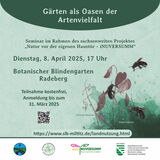 Das kostenfreie Seminar »Gärten als Oasen der Artenvielfalt« im Rahmen der Mitmachinitiative »Natur vor der eigenen Haustür – iNUVERSUMM« findet am 8. April 2025 ab 17 Uhr in Radeberg statt.