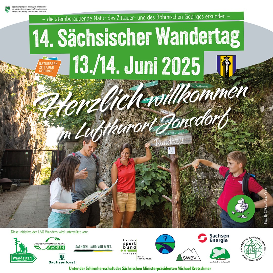 Zum Sächsischen Wandertag erwartet der Kurort Jonsdorf am Wochenende vom 13. bis 14. Juni zahlreiche Wanderfreunde aus ganz Sachsen. Insgesamt 23 geführte Touren – von familienfreundlich über sportlich bis hin zu thematisch spannend – machen Lust auf Natur, Bewegung und die beeindruckende Landschaft des Zittauer Gebirges.