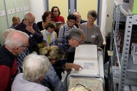 22 Heimatforschende besuchten im Rahmen des Projektes „Unterstützung des ehrenamtlichen Engagements in der Heimatforschung“ 24. Oktober 2018 das Leibniz-Institut für Länderkunde (IfL) in Leipzig. Dr. Heinz Peter Brogiato umrahmte kurz die Geschichte und Entwicklung des Hauses, um dann den Besuchern verschiedene Abteilungen des Instituts vorzustellen. Trotz der Forschungsschwerpunkte Mittel- und Osteuropa, beinhaltet die bibliographische Sammlung weltweite Themen. Für die Heimatforschenden ist die einzigartige Sammlung von Heimatzeitschriften aus ganz Deutschland besonders interessant, von denen Dr. Brogiato verschiedene Exemplare zur Ansicht vorbereitet und ausgelegt hatte. Eine zusammenfassende Bibliographie dieser Zeitschriftenreihen ist derzeit in Arbeit.