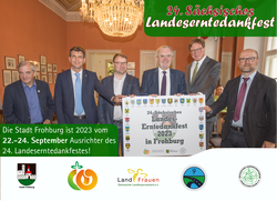 Das 24. Sächsische Landeserntedankfest findet vom 22. bis 24. September 2023 in Frohburg statt. Dazu wird herzlich eingeladen!
