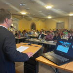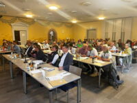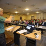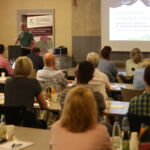 Neben dem Schulwandertag hat das vom Sächsischen Landeskuratorium Ländlicher Raum e.V. organisierte Fachforum „Wander-Werkstatt“ mit über 70 Teilnehmern im Historischen Rathaus zu Grimma um 10 Uhr begonnen.