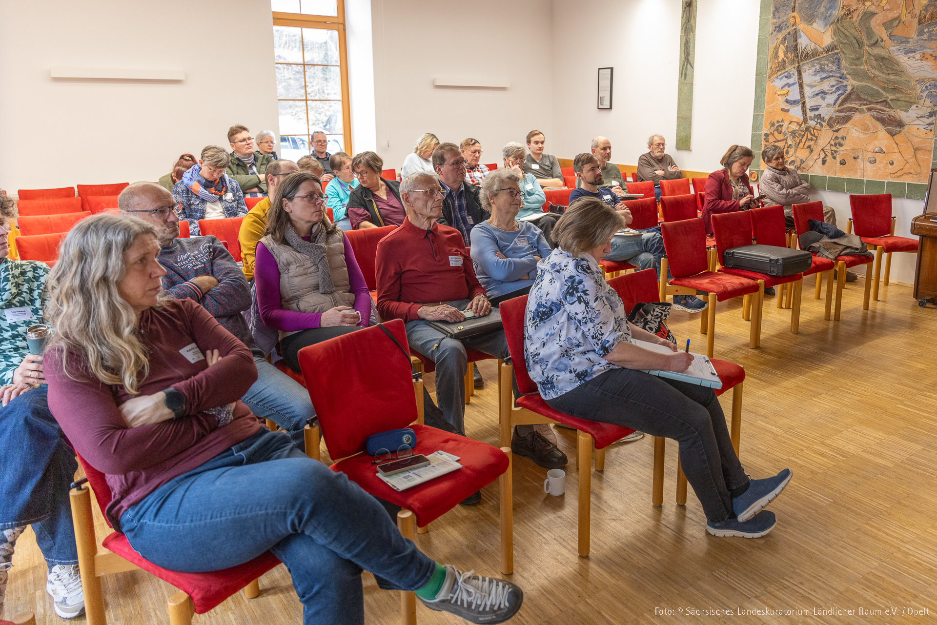 Unter dem Motto „Heimatgeschichte sichtbar machen – Präsentieren, Publizieren, Vermitteln“ fand am 21. März 2026 der 10. Fachtag für Ortschronisten und Heimatforscher in der Heimvolkshochschule Kohren-Sahlis statt. Rund 80 Engagierte aus ganz Sachsen folgten der Einladung des Sächsischen Landeskuratoriums Ländlicher Raum e. V., um sich über neue Wege der Geschichtsvermittlung auszutauschen und praxisnahe Impulse für ihre eigene Arbeit mitzunehmen.