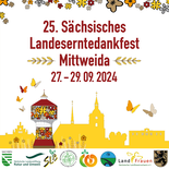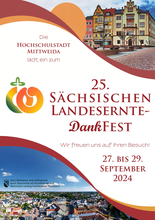 Das Sächsische Landeserntedankfest wird im Jahr 2024 die Stadt Mittweida im Landkreis Mittelsachsen ausrichten. Das gab Staatsminister Thomas Schmidt heute (23. August 2023) gemeinsam mit dem Geschäftsführer des Sächsischen Landeskuratoriums Ländlicher Raum e. V. (SLK), Marko Klimann, bei einem Besuch in der Stadt bekannt. Das Fest findet vom 27. bis 29. September 2024 statt.